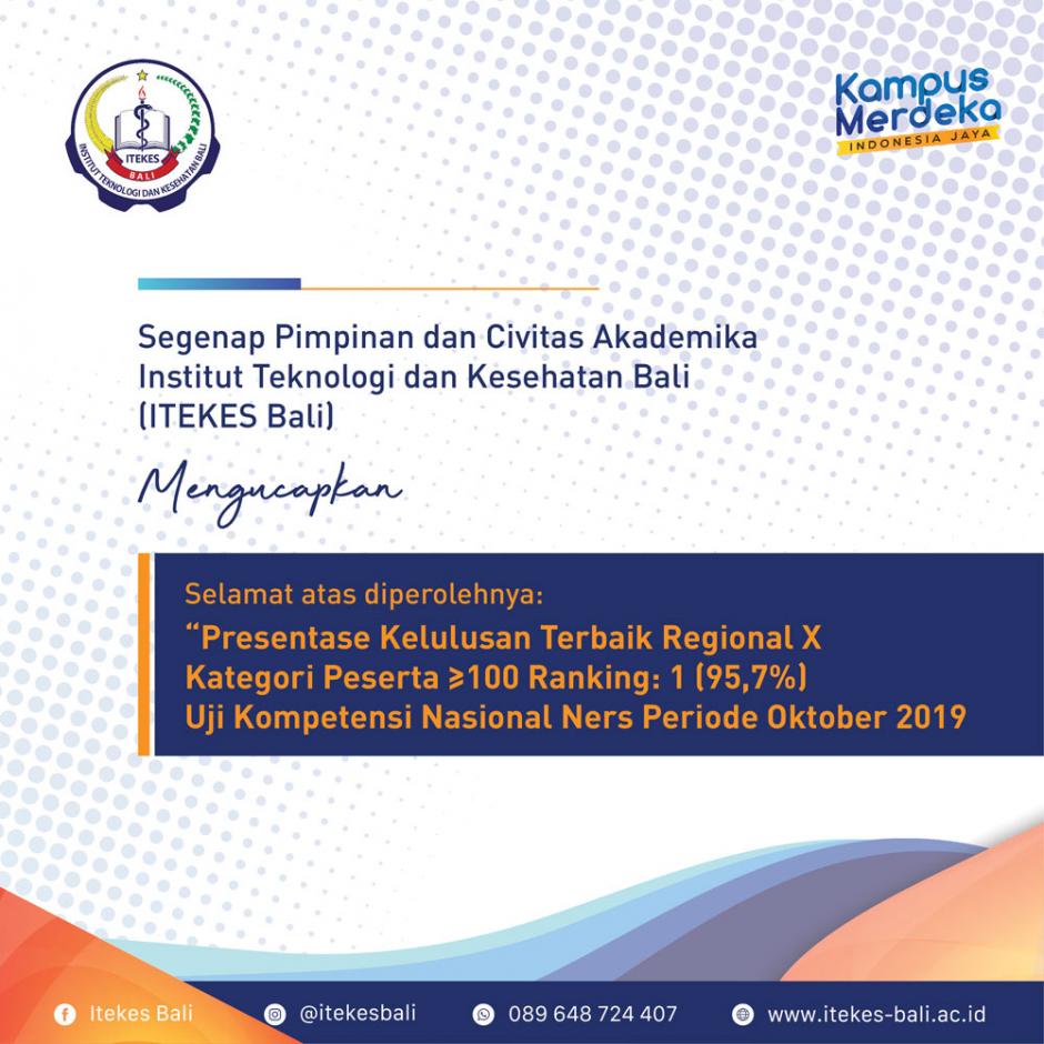 Segenap pimpinan dan civitas akademika ITEKES Bali mengucapkan "Selamat Atas Diperolehnya Presentase Kelulusan Terbaik Regional X Kategori Peserta >=100 Ranking: 1(95, 7%) Uji Kompetensi Nasional N[...]