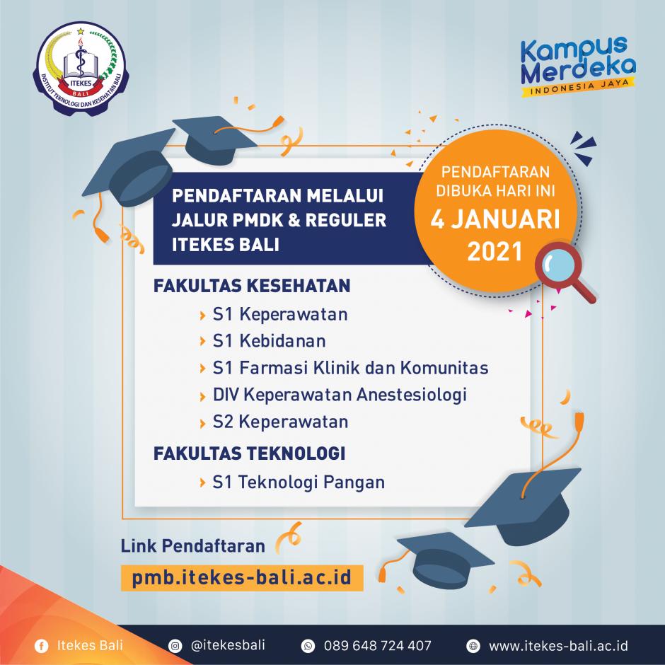Halo Itekesfams!Pendaftaran Mahasiswa Baru baik jalur PMDK ataupun Reguler & Program B tahun akademik 2021/2022 ITEKES Bali sudah dibuka dari 4 Januari 2021. Kalian bisa langsung mendaftar dari ru[...]